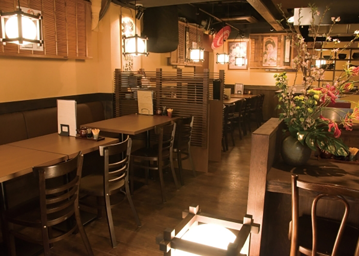 町屋風のレトロで落ち着いた雰囲気。女性一人客もよく訪れるというカウンター席と、グループで楽しめるテーブル席、それぞれにゆったりと楽しい時間を過ごせそうです。